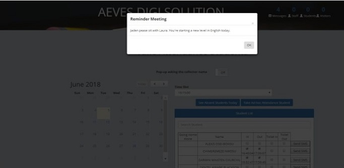 Aeves Digital Solution (Adigis) is a simple but comprehensive user-friendly web-app. It is not only an attendance register, but also a classroom manager and a quick contact of students’ parents. In addition to the quick register option that makes signing in and out pretty easy, it features file export options. This web-app can be accessed on your mobile phone, laptop or tablet as long as you have internet facility such as wi-fi, mobile data, Mobile Hotspot etc.